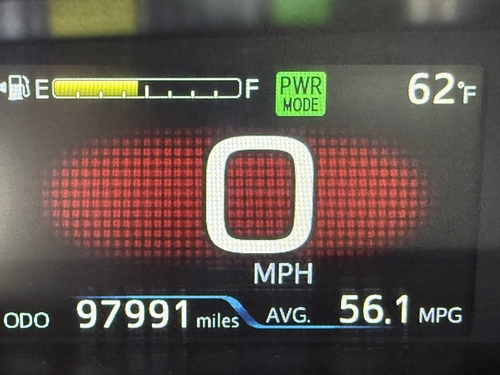 The Prius Prime is a plug in hybrid that works an an electric car for the first 30-35 miles and then like a regular hybrid Prius achieving 55-60 MPG after. 55 city/53 highway/54 combined EPA